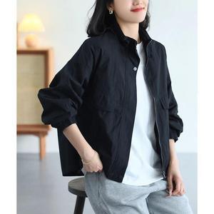 秋韩系立领宽松复古设计感工装小个子上衣休闲短外套夹克冲锋衣