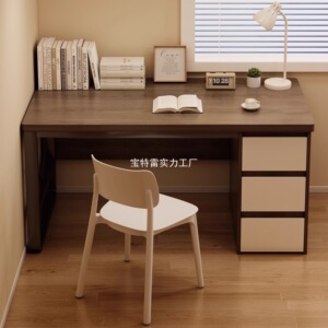 台式电脑桌子带抽屉家用书桌卧室学生学习桌出租屋简易长条办公桌