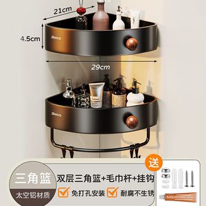 中古风浴室置物架免打孔卫生间三角篮厕所洗漱台墙上收纳转角架子