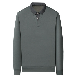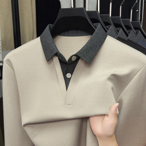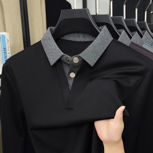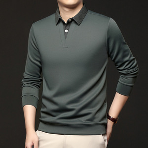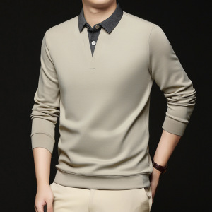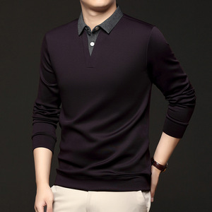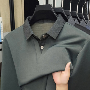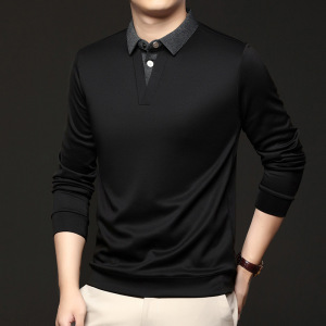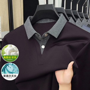 秋季新款含绵羊毛桑蚕丝男士长袖Polo衫高档休闲抗起球假两件T恤
