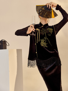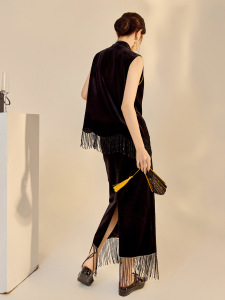 国风新中式重工刺绣轻奢流苏秋季2025新款高端马甲半裙套装 N8068