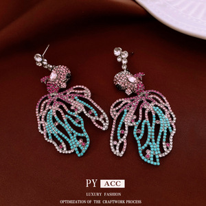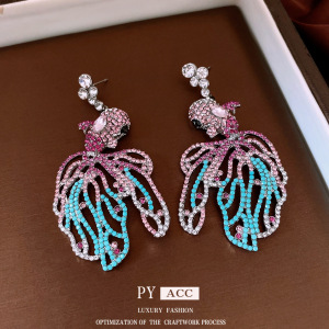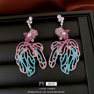银针金鱼镶钻镂空吊坠耳环中古vintage时尚耳钉设计感小众耳饰女