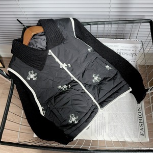 小个子刺绣花朵翻领毛衣外套女秋冬季新款设计感棉服拼接针织开衫