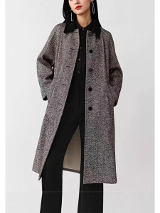 小禾女装商场同款2025秋季新款混纺花呢毛呢大衣女士中长款外套