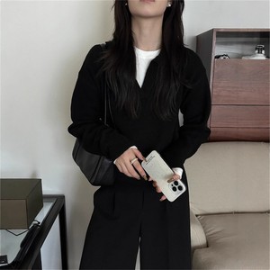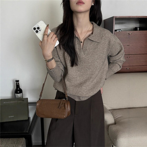 纯色翻领毛衣女内搭针织衫2025秋冬新款慵懒风POLO打底衫韩系上衣