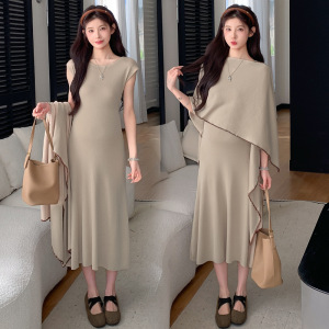 网红孕妇装大码孕妇背心裙+披肩两件套慵懒毛衣孕妇套装