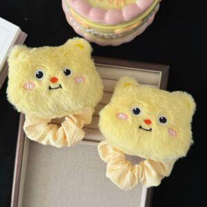 秋季奶黄色大号小熊毛绒大肠发圈可爱女孩风马尾发绳发饰批发新款