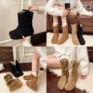 法式内增高勃肯靴子马丁靴女款2025新款秋季美拉德圆头短靴堆堆靴