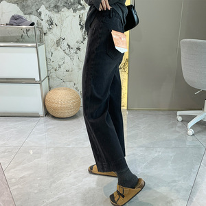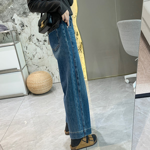 无di好穿!立裁拼缝四面弹牛仔裤女秋季松紧腰直筒宽松垂感奶奶裤