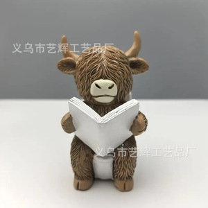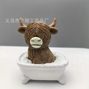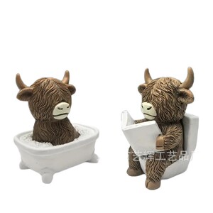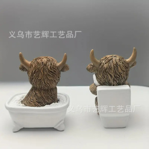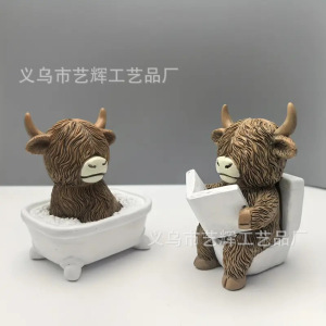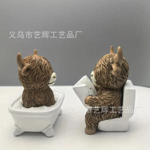 跨境热销新款创意树脂高地牛雕像浴室坐马桶家居高地牛节日装饰