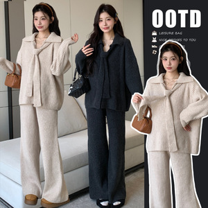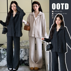 孕妇装秋冬季套装2025新款毛衣阔腿裤大码显瘦孕妈外穿慵懒风套装