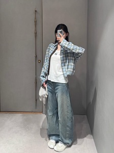 高品质~2025早秋新裤格纹褶皱夹克外套女复古百褶长袖上衣时尚女