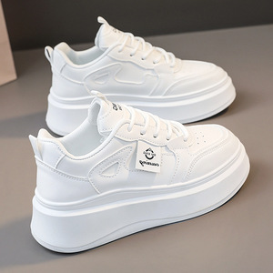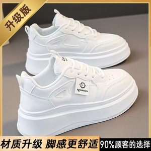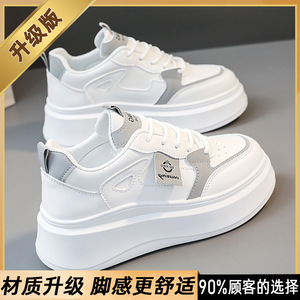 真皮小白鞋女2025春秋新款厚底内增高女鞋配裙子百搭超火休闲板鞋