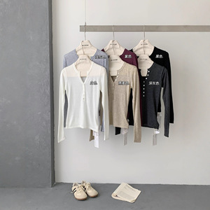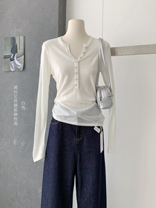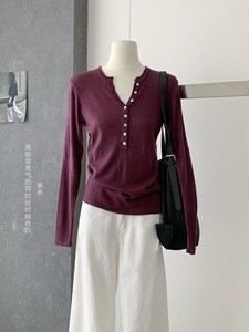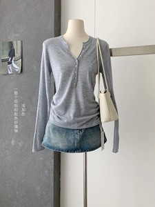 羊毛小初秋软糯松弛慵懒显瘦卷边袖t恤长袖休闲百搭上衣