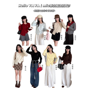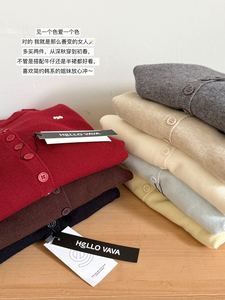 HELLOVAVAmiu系小狗针织开衫韩版简约百搭圆领针织开衫女秋季新款