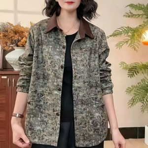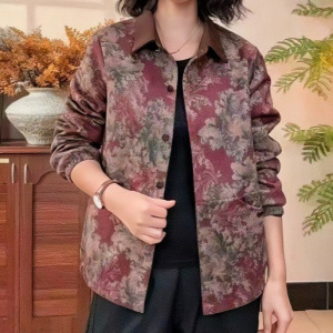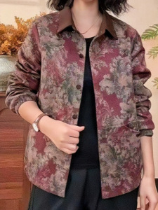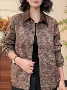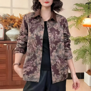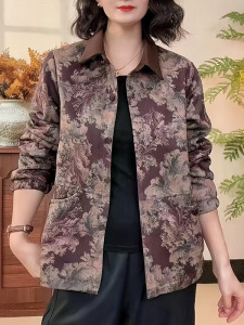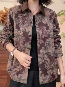妈妈碎花翻领外套薄款秋季新款中老年女装长袖宽松衬衫上衣