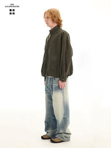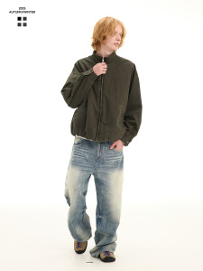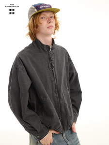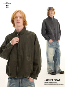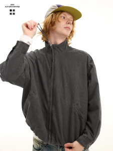 UNF 哈灵顿美式复古洗水做旧宽松BOXY版型纯色立领夹克外套秋冬男