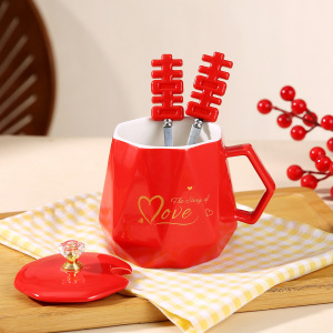 喜庆马克杯大容量情侣对杯实用陶瓷水杯送闺蜜新婚礼物婚礼伴手礼