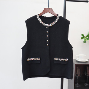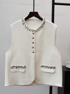 重工亮片设计感针织双面呢马甲开衫2025秋冬新款小香风毛衣背心女