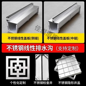成品排水沟u型槽不锈钢树脂厨房花园庭院子U形下水道地沟线性盖板