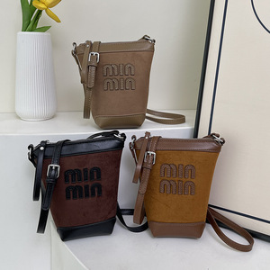 轻奢磨砂跨境字母水桶包秋冬新款高级百搭时尚通勤单肩斜挎女包潮