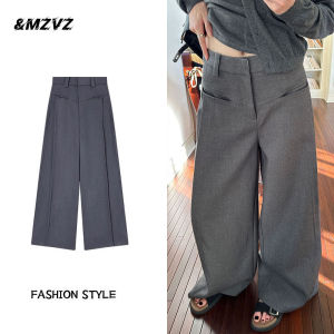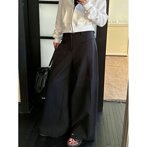 叠褶腰贴灰色西装裤女早春新款时尚百搭高腰显瘦阔腿垂感拖地长裤