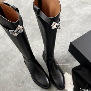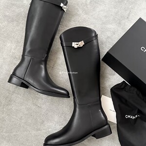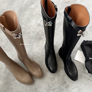 现货版~2025 行走的腿精斜口锁扣骑士靴胖mm大筒围高筒靴平底长靴