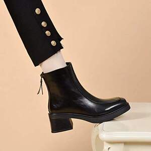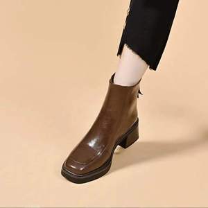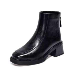 抖音同款秋冬新款时尚气质百搭方头厚底英伦风小裸靴软皮马丁靴女