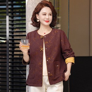 新中式外套女春秋短款2025新款时尚年轻妈妈装长袖圆领宽松上衣