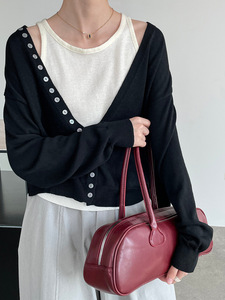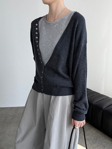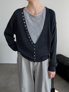 滔川 高级感贝壳扣V领针织开衫+背心叠穿两件套女秋上新YL932