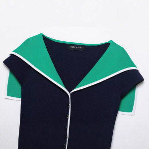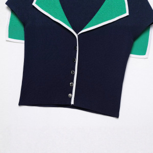 跨境外贸2025新款欧美风时尚拼色翻领修身短款针织上衣5536190401