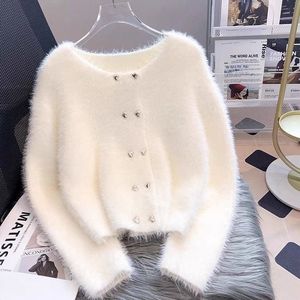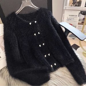 仿水貂绒针织开衫毛衣外套女装春秋冬季短款2025欧货气质超级好看