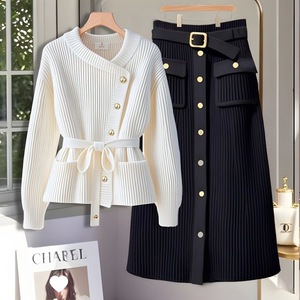 法式气质高端高级设计感保暖上衣外套a字半身裙子轻奢秋冬套装女