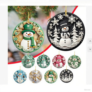 跨境新品新年礼物创意可爱雪人挂件亚克力平面挂件圣诞树装饰品
