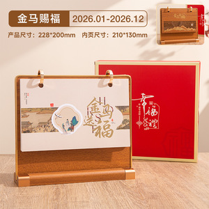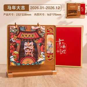 2026年新款木质台历新中式创意日历送领导创意伴手礼桌面摆件定制