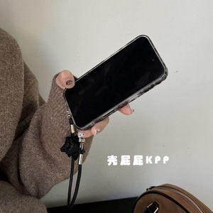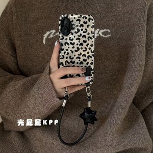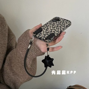 甜酷黑银豹纹星星手提绳适用iPhone16promax苹果15手机壳17新款14