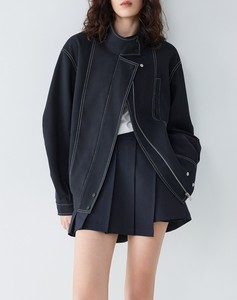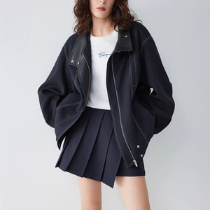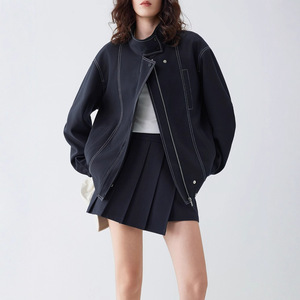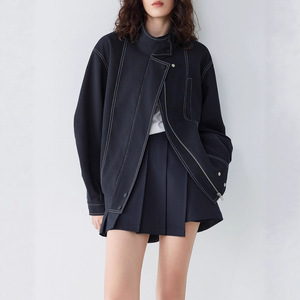 法式廓形高级感外套女2025秋季新款撞色宽松通勤立领夹克上衣