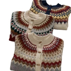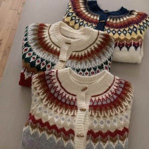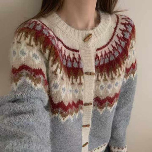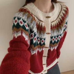 复古北欧风费尔岛牛角扣毛衣外套女秋冬圣诞慵懒软糯针织开衫上衣