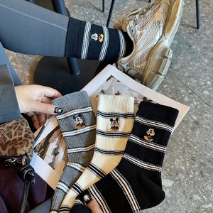 韩版轻奢东大门同款袜子女士米奇条纹中筒袜百搭高颜值学生堆堆袜