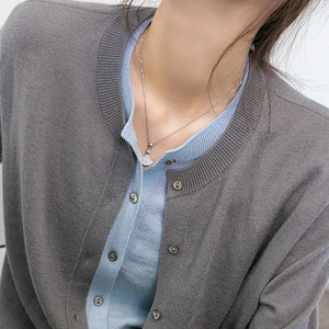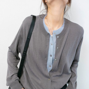 绵羊毛 假两件灰色针织开衫外套女春秋2025新款打底毛衣