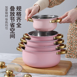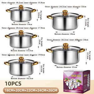 跨境礼品厂家直供10件套锅 家用厨房商用通用双耳汤锅 不锈钢套装