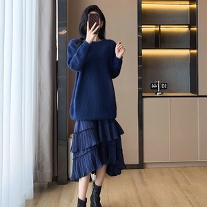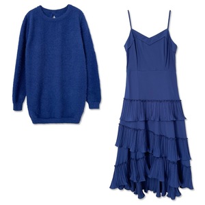 高端名媛蓝色毛衣裙高级时装套装女2025新款秋季小个子穿搭一整套