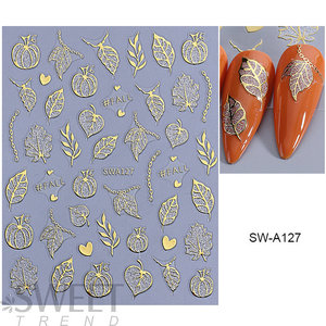 2025跨境新款美甲贴纸 万圣系列带闪粉南瓜蜘蛛叶子指甲背胶贴花