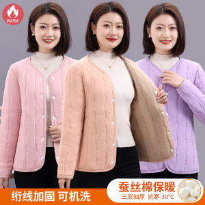 棉袄女冬季新款加绒加厚棉衣保暖中老年棉袄洋气妈妈蚕丝棉衣内胆
