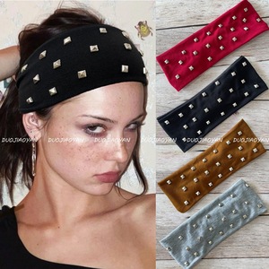 欧美跨境新款朋克风发带复古豹纹辣妹发饰高级感时尚铆钉配饰头带