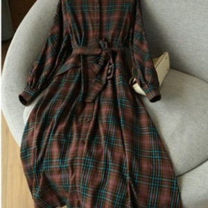 原单意大利剪标出口秋季新款系带显腰身衬衣外套复古连衣裙女