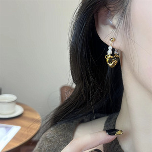 热卖爆款美拉德虎眼石珍珠耳环秋冬气质轻奢精致高级感前后戴耳钉