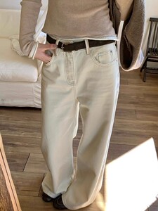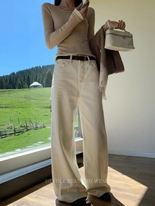 黑豆哼哼 雪线信标*米杏色牛仔裤送腰带