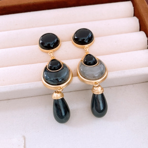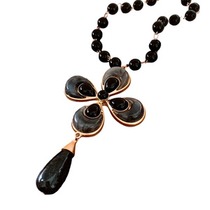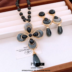 中古vintage水滴花朵串珠耳环项链轻奢高级感毛衣链时尚首饰套装