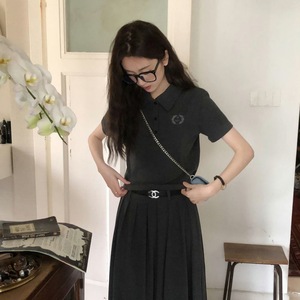 学院风衫刺绣弹力短袖套装2025夏新款上衣半身裙